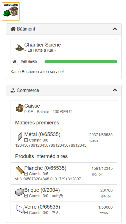 modéré 10/08 (09:12)Corrigé, les valeurs seront vérifiées (min, max).J'ai testé dans mon chantier Scierie à Boulet-City, en Bouletie, de dépasser / ne pas respecter les valeurs minimales et maximales demandées. (onglet Gestion d'un matériel)