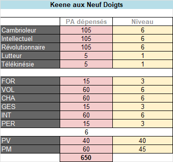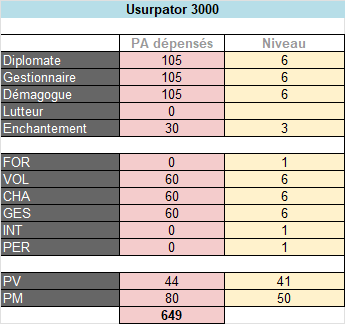 Avec 400 PA, le build voleur est déjà finalisé. Les 250 PA en plus, c'est du bonus, pour ajouter un peu de protection, ou des trucs dans le kit.