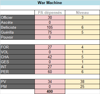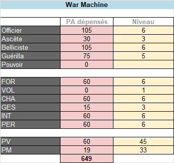 Bon, j'ai retiré les gains de PA liés aux médailles. On en reparlera quand/si je fais les badges.