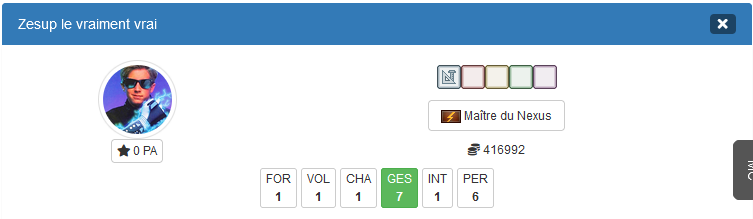 - Remettre les mentions des vocations choisies pour que tout soit visible direct. Alternative : créer des petites icones custom (elles pourront servir aussi dans les règles, à la place des icones "standard" actuelles).